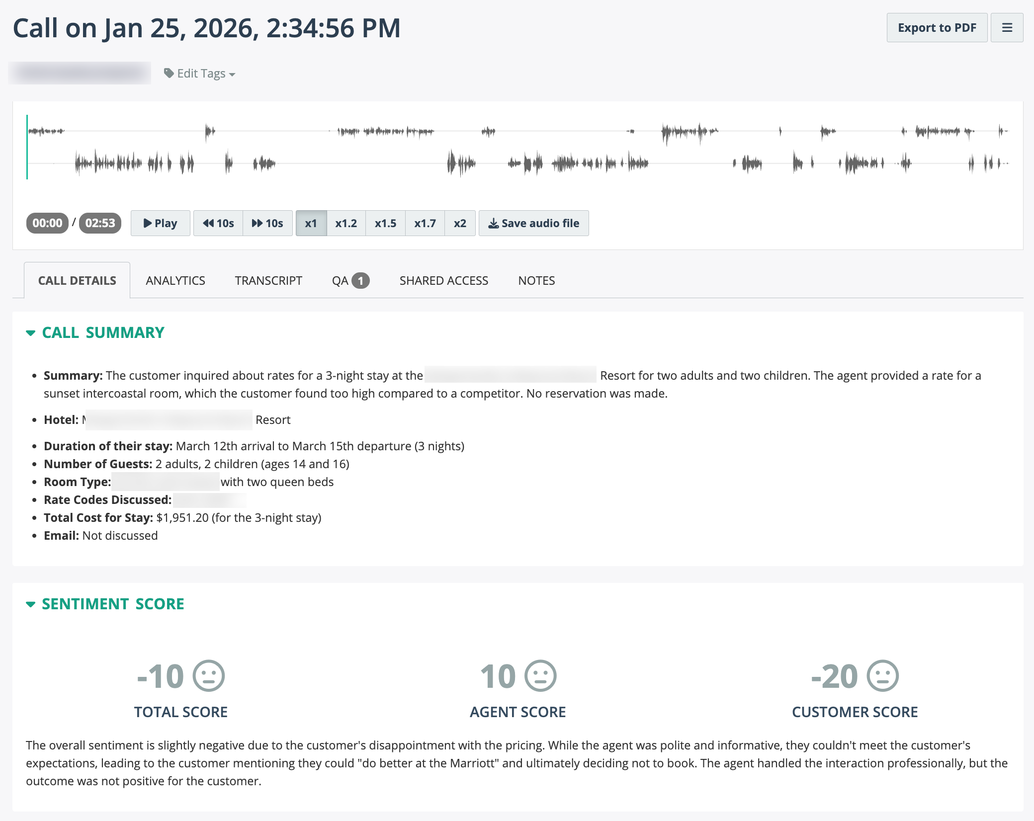 Figure: Call summary displayed in conversation details.