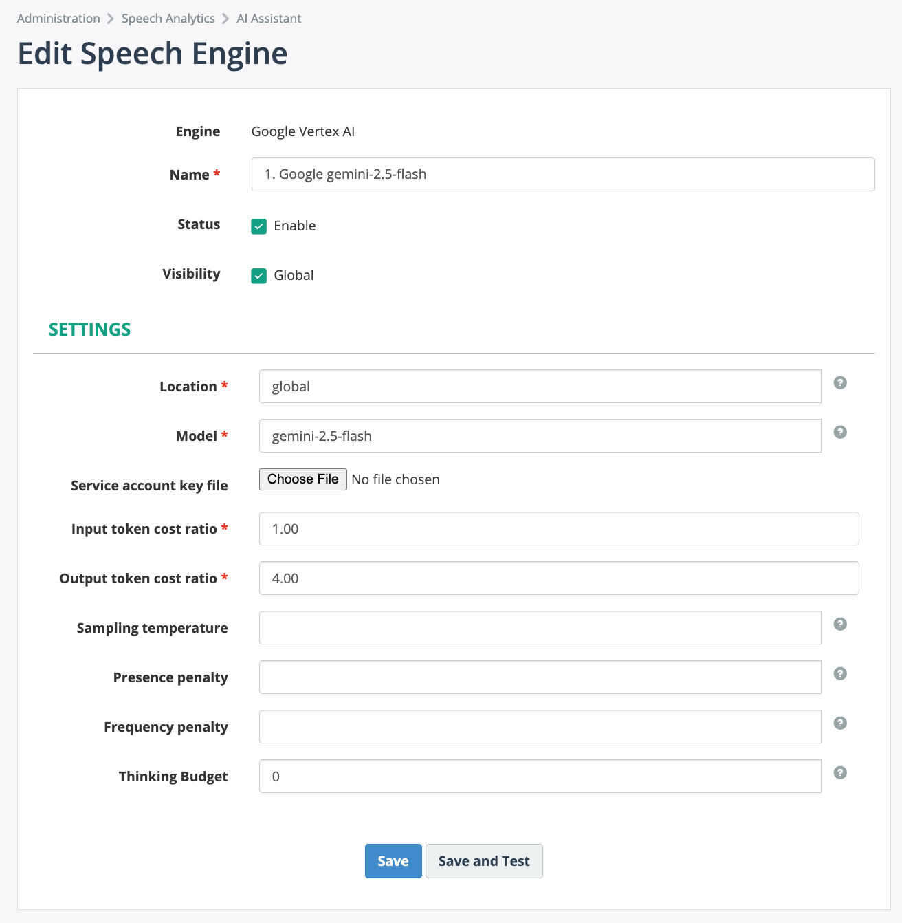 Menu path: Administration > Speech Analytics > AI Assistant > Engines