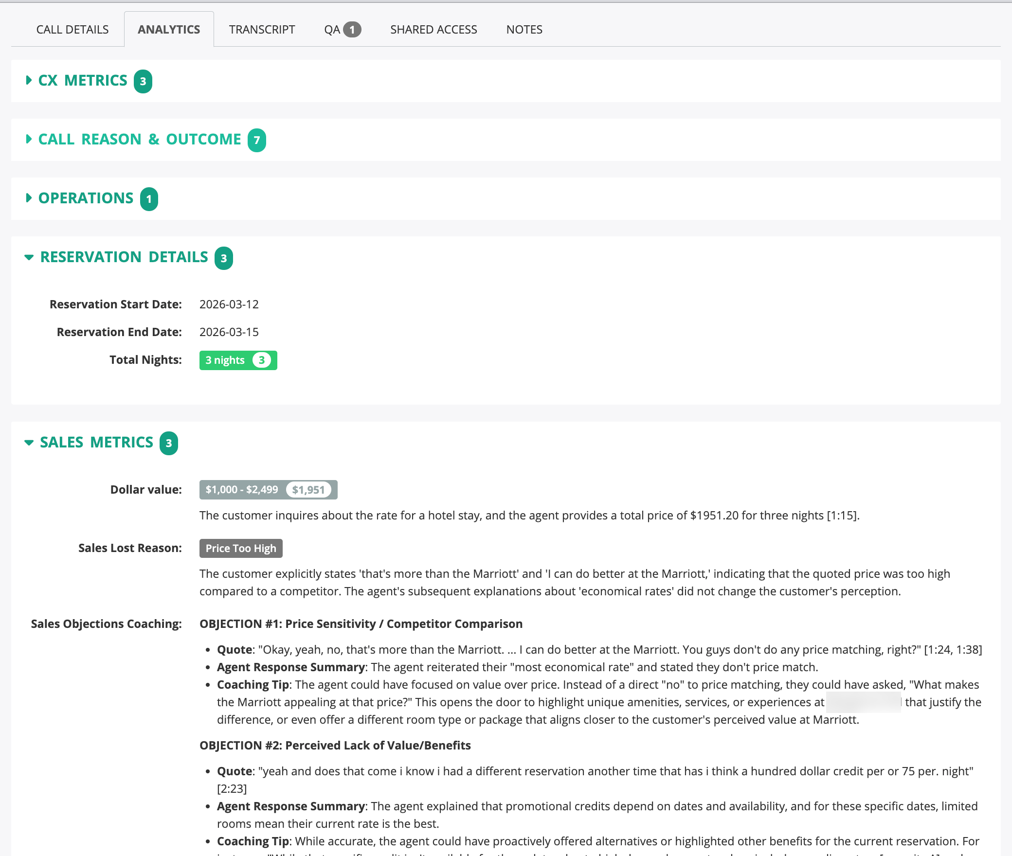 The Conversation Details page is where you review a single conversation end-to-end: - metadata (time, participants, channel, agent/team), - transcript or message thread, - AI insights (values + explanations).