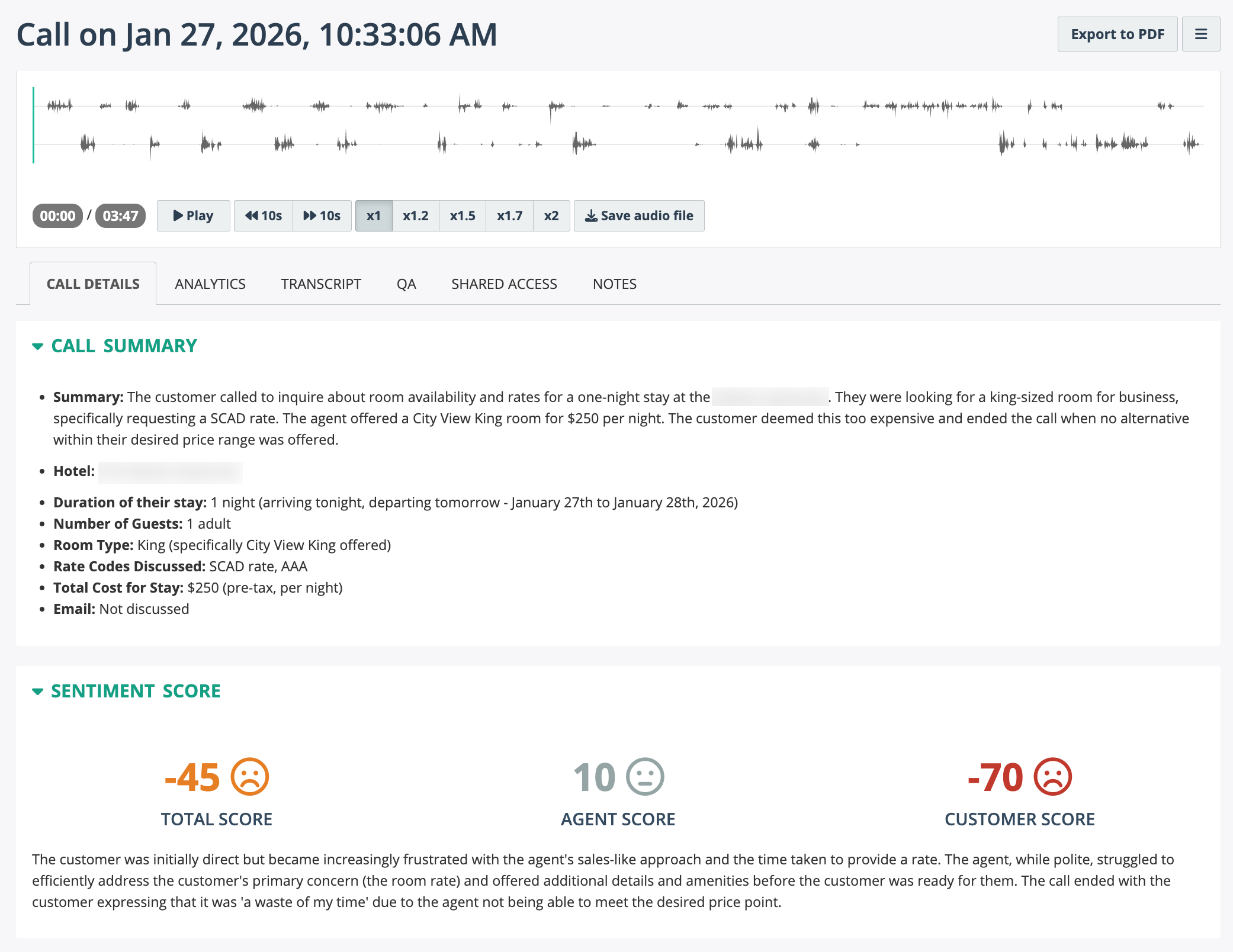 Use Search to narrow down patterns. Examples: - “CSAT < 3 AND Topic = Billing” - “Competitor Mentioned AND Deal Stage = Negotiation” - “Auto QA score < 80 AND Escalation Reason present”