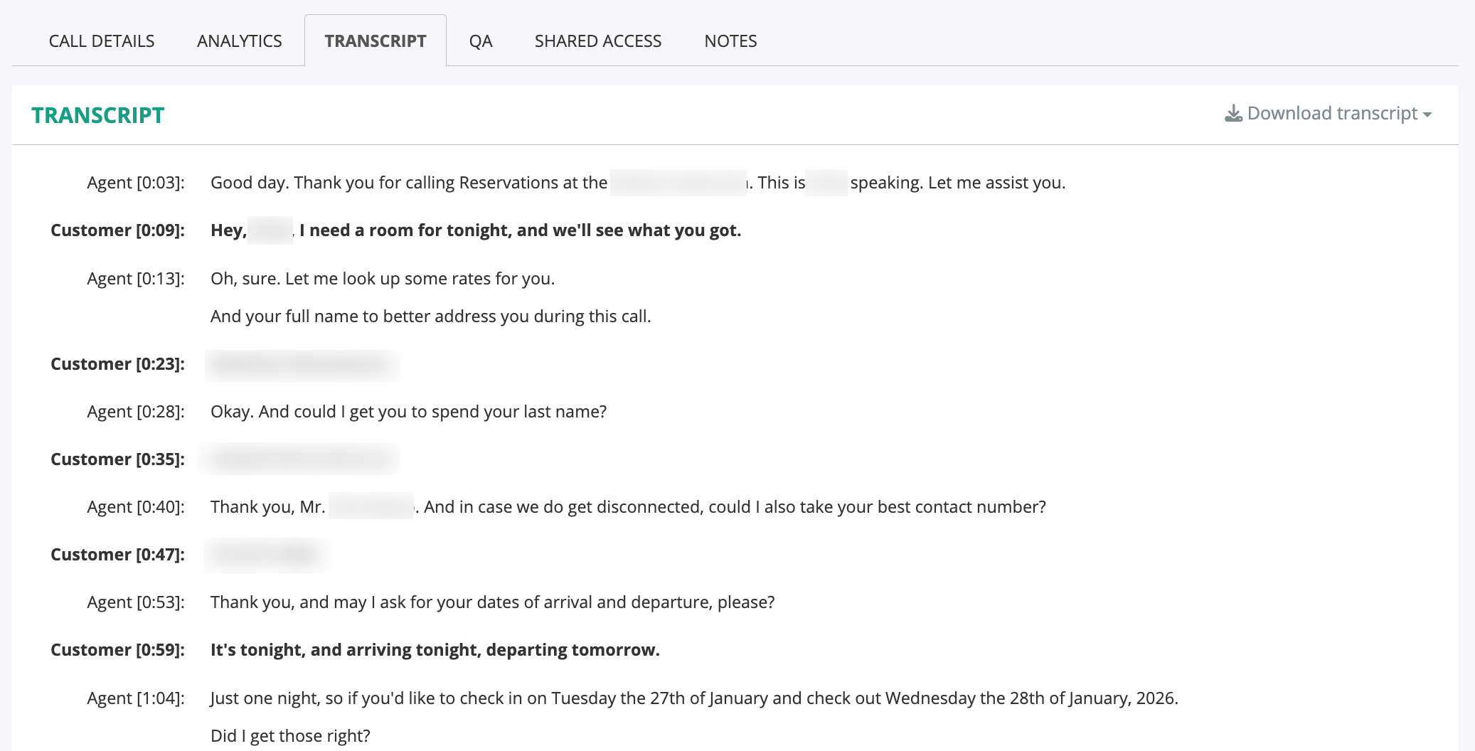 - For more call details, click "Open in new window" or "More details" to see the full transcript/thread view.